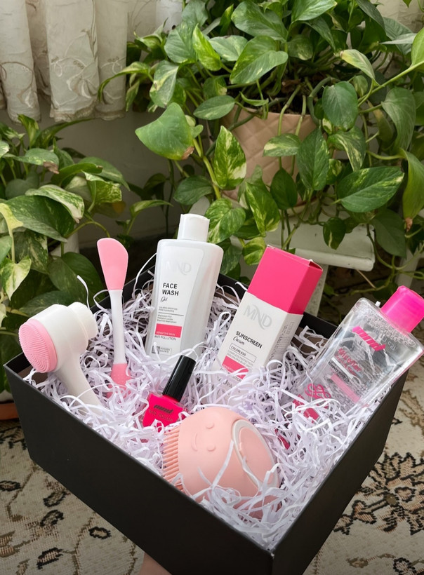 حجمپک شامل :میسلارواتر،ضدآفتاب ،ژل شستشوی صورت، بالم مرطوب کننده پوست حساس،لاک،براش ماسک،براش شستشوی صورت ،سر شور سیلیکونی به همراه جعبه و پوشال